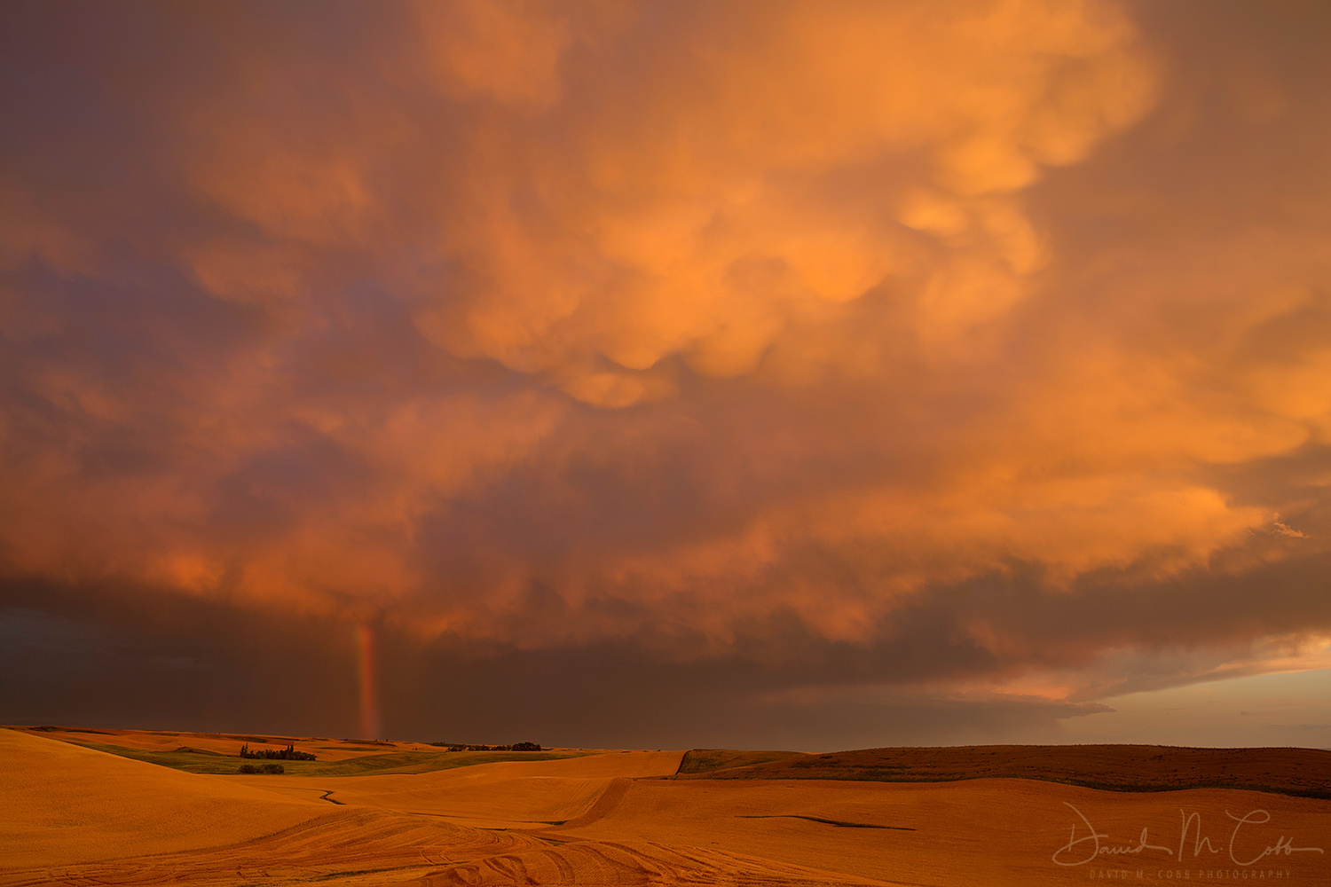 - Mammatus clouds and a rainbow at sunset in the Palouse. Washington. USA